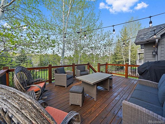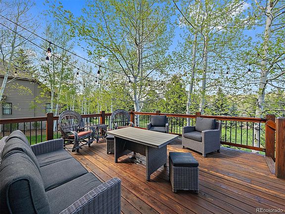 Don’t miss this cozy home nestled in the aspen trees in the Island at Hiwan subdivision. One of the best North Evergreen, gated areas located close to Hiwan Golf Course (not a mandatory membership), near Bergen Park within walking distance of schools, shopping, dining, a recreation center, an art center and hiking areas. This home combines the warmth of classic design elements and the lines and simplicity of modern elements. Numerous updates include the addition of new windows, an updated kitchen, a welcoming patio with a custom stone gas firepit, an updated primary bath and a remodeled lower-level family room and 3/4 bathroom. The almost half-acre lot backs to other half-acre lots while also providing privacy. The main floors offers several areas to entertain and relax, including access to the deck and back patio. The upper level has 4 bedrooms (including the primary) and 3 bathrooms. You'll love the luxurious primary bath with a soaking tub, heated tile floors, 2 vanities and a walk-in closet. One of the upper bedrooms (currently used as an office) has an ensuite bath. The other two bedrooms currently open to each other (set up as a bedroom with a study/hangout area). A door could be added to separate these two spaces again. The updated lower walk-out level is designed as a workout area and family room with an updated bath and a private bedroom for guests. Cabinetry and a counter space in this area has plumbing to add a sink and/or a refrigerator. The neighborhood allows easy access to Denver and the mountains and hosts several neighbor events each year. Xfinity high speed internet.