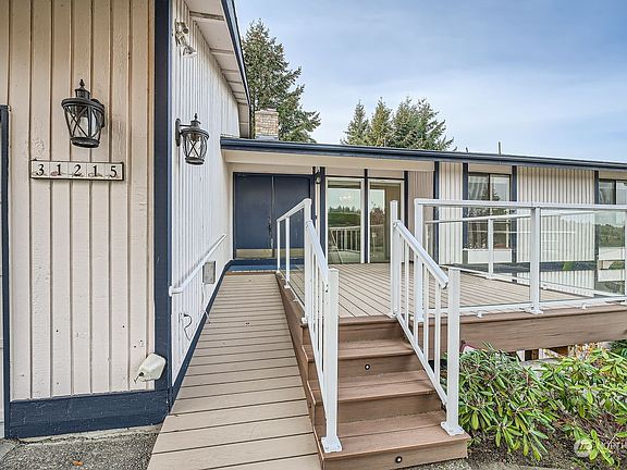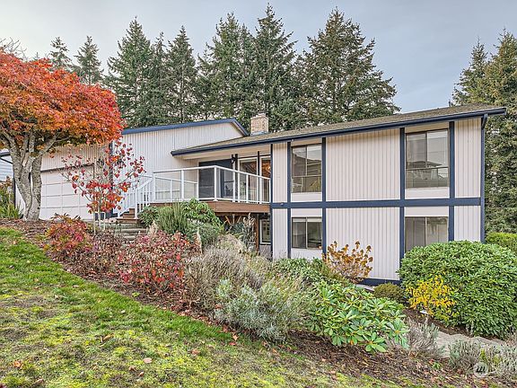 Puget Sound view home, 5-bedroom, 2 baths home nestled on a quiet cul-de-sac in the Twin Lakes Country Club community. Features include custom kitchen cabinets with eating area, walk in pantry, movable hidden island, functional floorplan for entertaining, and a spacious main floor master suite and two additional bedrooms one with views of the sound . The lower level boasts two bedrooms, a rec room with a gas fireplace, laundry room and second kitchen —ideal for multi-generational living. Enjoy outdoor living on the decks with scenic views, plus a well-maintained yard. Close to schools, parks, and the golf course!