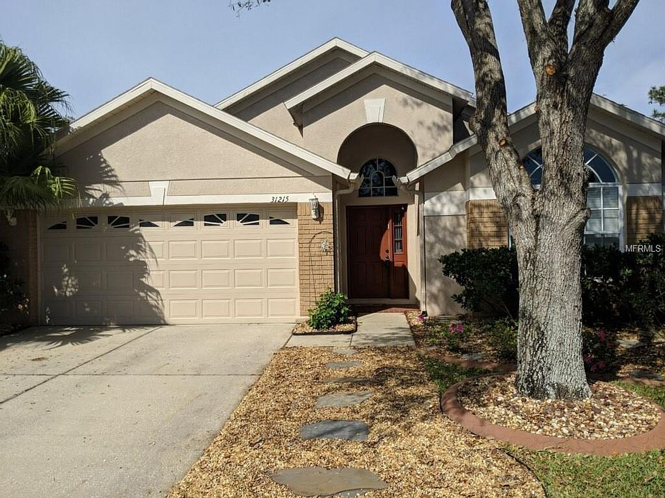 Check out this 4 bed/ 2 bath/ 2 car garage home situated on a private conservation lot in a gated community of Meadow Pointe. Only 1.9 miles from the neighborhood schools. This home has the features everyone is looking for including a heated pool and spa, outside refrigerator and grill, screen enclosure, brick paver pool deck and lanai, plus a central vacuum system. The home has been upgraded with granite countertops/new sinks in the kitchen and both bathrooms (2018), new ceiling fans throughout the house (2018), new toilets (2018), GE stainless steel kitchen appliances (2018), and a new GE washer/dryer set (2018). The backyard has a great view of the wooded conservation area and is completely enclosed with wooden privacy fence. Community amenities include resort style pool, tennis, volleyball, shuffleboard, recreation building, playground, plus basketball and are located just .4 miles away. One HOA payment of $76 for 2019. Address is currently zoned for Wiregrass Elementary, Dr. John Long Middle, and Wiregrass Ranch High School.