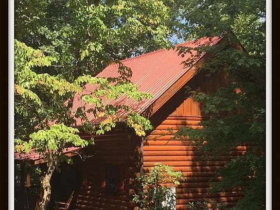 A great combination of fabulous location on shaded lot and in pristine condition, this cabin invites relaxation and restoration from the front porch, throughout the interior, the multiple decks, and on out to the fun grassy picnic/bbq area (possible to build another little cabin in this spot, too). Exterior wood and metal roof are in excellent condition. Interior of cabin is inviting and cozy and all wood. Tastefully decorated with large windows throughout to enjoy the views from any room. Stainless steel new appliances and fully stocked kitchen. Wood stove will be enjoyed on any cool day (and plenty of wood on this property, too!). Bedroom (with screened deck) and bathroom on main level. Upstairs has large loft (used for 3rd bedroom) as well as another bedroom and bath. Check out the custom-built barndoors up there, too! When you go to the backyard, follow the steps down to the outdoor living area, complete with a small stream at the back of the land. This area is perfect for outdoor picnics, ballgames, etc.