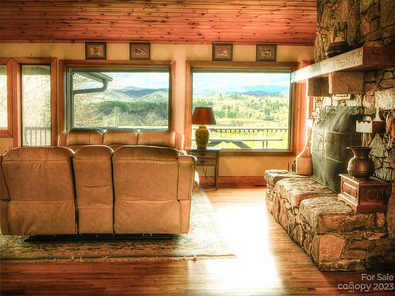 Long range mountain views and only minutes from Brevard! This home features primary bedroom suite on main level - two stone fireplaces--one in great room and one in lower level family room - Workshop with outside entrance - Large covered and open deck to enjoy the fantastic mountain/valley views - 4+ acres affords privacy -