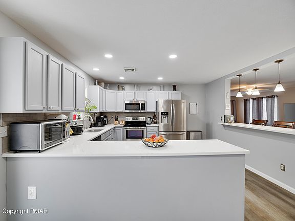 Property is Under Contract and considering back-up offers only at this time. Come and enjoy this beautiful 4 bedroom, 2.5 bath homethat offers the perfect blend of privacy and spacious living. Home features quartz countertops and tile backsplash in the kitchen, Eat-In-Kitchen with sliding doors leading to the back deck! Living room as a propane fireplace insert. There is also a 1st floor bonus room that you can use as a den, office of another sleeping quarter! Primary bedroom has cathedral ceilings with walk-in-closet and an ensuite with a jacuzzi tub and standup shower. Tucked away in a quiet corner of Tobyhanna, this home provides a serene retreat from the hustle and bustle of daily life. Situated on an expansive 1.85-acre lot, a rare find with the added benefit of NO HOA restrictions.