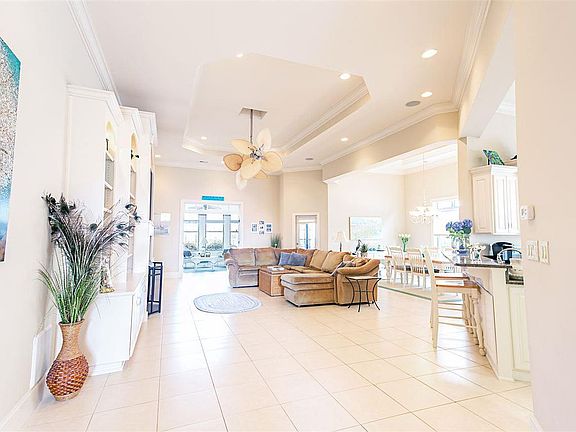 Prepare to be impressed by this all brick home with inviting patio paver driveway located on a gorgeous lot in the highly desirable Bluffs on the Waterway community. This single-owner property was custom built and features all the extras expected in an executive style home including an outdoor kitchen, built in sound system, central vacuum, oversized walk in pantry, and so much more. You will be wowed by the vast open concept space featuring 12'-14' ceilings in the great room. The main floor master suite offers an enormous walk in shower and 6ft soaking tub with custom shelving in the master closet. The main level boasts two additional bedrooms, a Carolina Room, screened lanai, formal dining room, oversized kitchen with breakfast area, and laundry room. A second master bedroom suite on the second floor is perfect for out of town guests complete with its own en-suite. You will love the views from the fully fenced yard of this home overlooking a pond and fountain. Plenty of storage here with an oversized garage perfect for storing two cars and a golf car! The Bluffs on the Waterway is an Intracoastal Waterway community with many amenities including boat launch, day dock, community pool, two clubhouses, tennis courts, playground and more. Located near area hospitals, schools, shopping, and dining. Schedule your showing today!