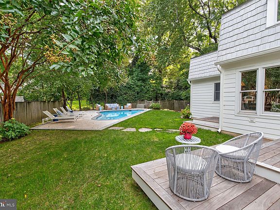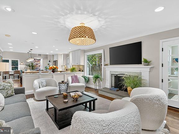 You’ve got to see it to believe it—first time on the market in 23 years! Set back from the street on a long driveway, this beautifully expanded and remodeled 4,330 square foot home offers a private, fully fenced yard with a sparkling pool and an unbeatable location just steps to Nottingham Elementary, Williamsburg Middle, and Yorktown High. Renovated by Whittington Design Studios with an airy, light-filled aesthetic, the main level showcases a show-stopping kitchen with a cathedral ceiling, an enormous 12-by-5 island that seats six, quartz countertops, three sinks, two dishwashers, two ovens, two refrigerators, a built-in banquette with seating for seven, and wide views of the pool. The kitchen opens to a gorgeous family room anchored by a glazed-brick fireplace and is complemented by two powder rooms—one with direct pool access—plus a sunlit office with built-ins and a living room/library lined with custom cabinetry and bookcases. Upstairs are four bedrooms including a spectacular primary suite with a 12-by-12 walk-in closet and luxurious spa bath, a large guest bedroom with an en-suite bath, two oversized secondary bedrooms, a hall bath, and a laundry room with extensive cabinetry. The above-ground lower level provides an enormous family room with multiple gathering spaces, a wet bar with beverage fridge, and a mudroom area. Premium finishes abound—Farrow & Ball paint, Thibaut wallpaper, Schumacher window treatments, and custom lighting—along with new windows, doors, roof, gutters, plumbing, electrical systems, and an electric car charger. The pool was re-plastered and re-tiled in 2023 with new bluestone decking and deck lighting, and the private backyard features a custom stone fire pit with boulder-stone seating for year-round enjoyment. Designed for every stage of life, this exceptional home is ready to be enjoyed with family, friends, and neighbors.