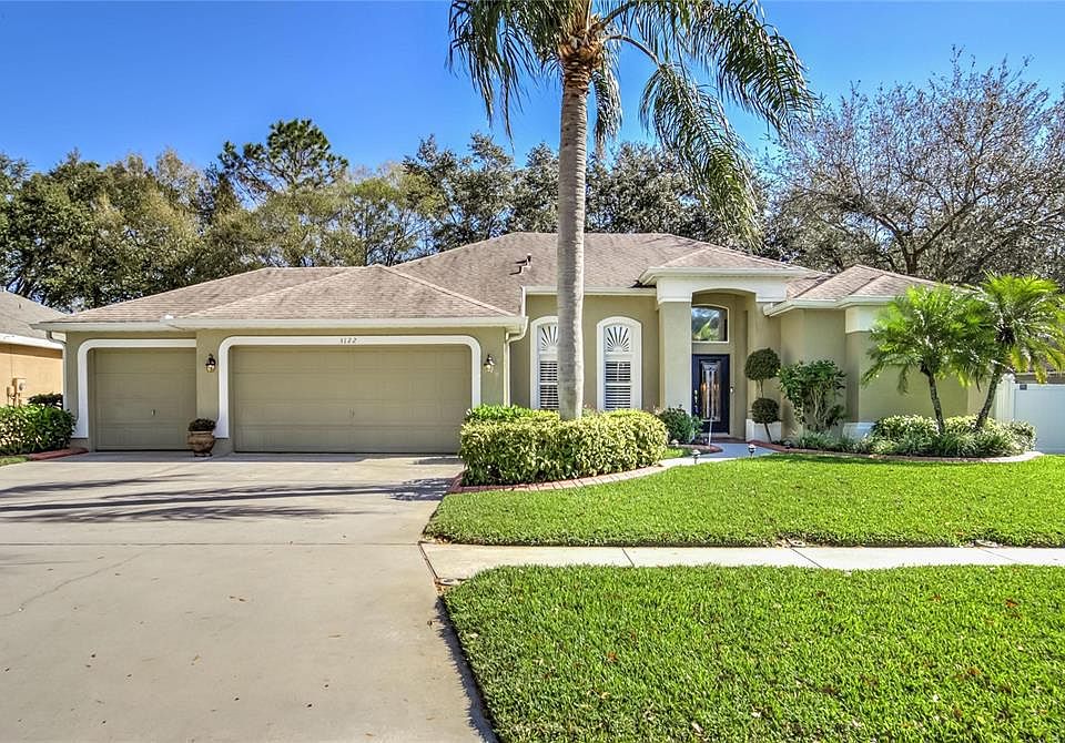 Picturesque home in highly sought-after Twin Lakes community! The four bedroom/2 bath home is surrounded by beautiful landscaping and community amenities. No detail was missed in this house! The 3-car garage houses the water softener and offers enough space for vehicles, toys, storage and more! Out back you will appreciate the backyard made very private with privacy shrubs and spacious lanai. Youll save about $100 per month as this house uses reclaimed water for all lawn care!! The screened lanai features brick pavers and is the perfect setting for hosting friends and family. Step inside to the dining living room combination and you will feel right at home. The split floorplan has TONS of natural light and upgrades. Plantation shutters, soaring vaulted ceilings, crown molding, tile and hardwood flooring, and huge windows give this home a luxurious feel. The master suite has lots of privacy and space to relax. The bathroom is beautifully updated and features a large soaking tub, stunning gray tile, huge shower, two vanities, two large closets, and a water closet. The beauty doesnt end there! The kitchen and great room are combined to provide an open space for entertaining. The kitchen has also been updated with granite counter tops, tile backsplash and stainless appliances. The custom built-ins in the great room are wonderful for storage and to display your family pictures or art. Two sizable bedrooms are off the living space and an additional bedroom is secluded offering privacy for guests or office space. The owners have maintained this home to perfection with a roof replacement just 5 years ago and water heater 2 years ago. The highly desirable Twin Lakes neighborhood has easy access to excellent schools and a quick commute to MacDill AFB, shopping, & dining! NO CCD & LOW HOA! The family-oriented community features amenities such as community pool, lakes, a kiddy park, tennis courts, basketball courts, and a soccer field! All of this can be yours! Call today to see your future home!