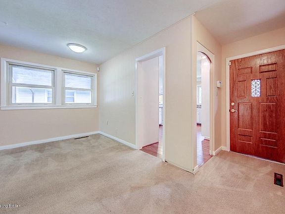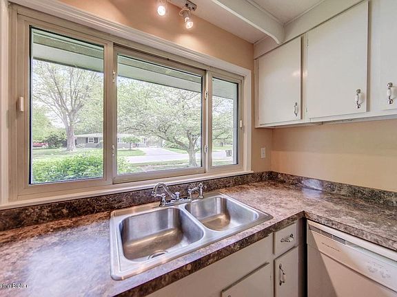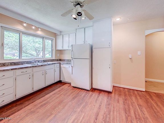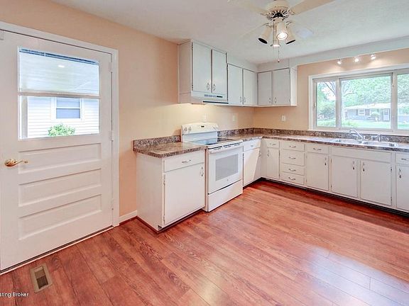 Spacious ranch with tons of storage has been freshly painted inside and out. So convenient to pull into the carport and bring groceries right into the kitchen which has lots of cabinets and counter space. The appliances remain (stove, 2 yrs, dishwasher 3 yrs, fridge older but works). The kitchen has new Pergo floor with 2 additional cases that will be left.The dining area can accommodate the largest of tables and is open to the living space and cozy attached den which has a roomy storage closet across the back. There is a linen closet in the hall. The bathroom has new tile in the shower area and a deep floor to ceiling cabinet.The Master has a new ceiling light/fan double closet and 2 windows. The second bedroom has a huge closet all the way across the back and there is a 3rd bedroom with a new ceiling light/fan.The large fenced back yard has a privacy fence across the back and a nice size deck with built in seating.There is all new plumbing from the street in and a security system. Almost all windows are Primax double pane. There is an additional storage closet at the back of carport great for storing all lawn items.The location couldn't be better. There is Farnsley Park right around the corner which has a soccer field, 2 play areas, a summer spray park and tennis courts. You are within walking distance to the free public library. There are sidewalks and mature trees. It is a peaceful place to live.You also have easy access to I-264