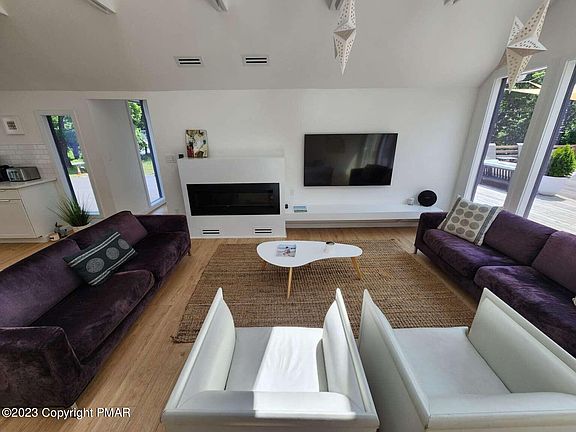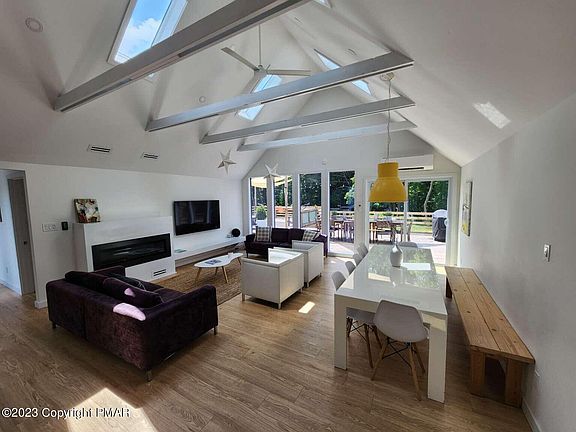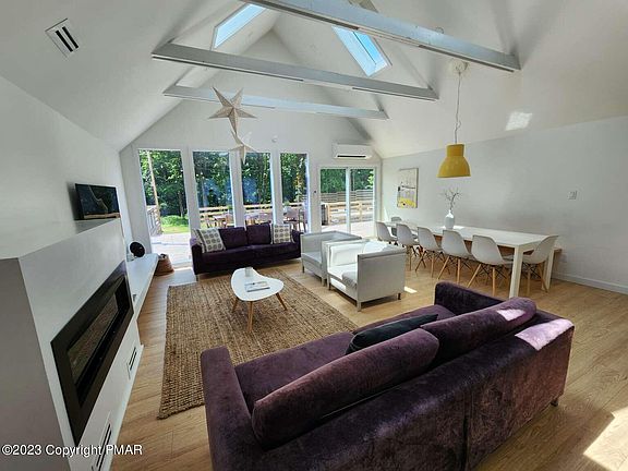 Amazing spacious brand new custom home with a detached guest house sitting on 4.4 acres, commercially zoned lot. Just ten minutes to Camelback Ski mountain, Aquatopia water park, Mount Airy casino, The Crossings premium outlets and more! Each house has its own driveway, electric meter, plumbing/ septic system. Main House: Spacious 5 Bedroom /5.5 Bath, open-concept main living space with cathedral ceilings and large glass panels, entertainment room with foosball table, ice hockey, arcade pac-man, loft, 2 laundry rooms, fabulous 1500sq.ft. multi-level deck with jacuzzi for 10. Split system HVAC in each room. Guest House: 3 Bedroom/ 2 Bath, formal dining area, second family area on second floor. HVAC in each room. Unfinished basement with laundry area. Both houses could be sold furnished.