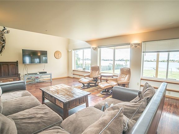 Spacious WATERFRONT home w/ 125'of Moses Lake low-bank frontage, private dock and enormous shop. Open concept w/ vaulted ceilings, sparkling hardwood floors and entire wall of windows highlighting gorgeous lake views. Nice separation of space w/ bedrooms located on upper level and bonus loft space. Back patio w/ both covered and uncovered entertainment areas and large 2nd floor view deck. Detached shop w/ 7 bays including 2 RV doors. Shop also includes living space, full kitchen and full bath.