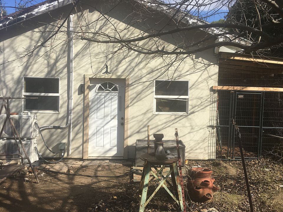 Quiet Rural Cottage. I am looking for a single person to rent a newly renovated and partially furnished cottage up the hill from my home. It has beautiful yard and orchard with kitchen, big bath, and a laundry unit. Stairs lead up to sleeping loft with lots of storage. Heavily screened catio/dogio along one side. Large dogs welcome. The Cottage is up a steep hill with limited drive-up accessibility. Some athleticism is needed to make this a comfortable home for you. Utilities are included, except for internet access. Small amount of internet access may be included but heavy use requires renter to acquire individual provider.