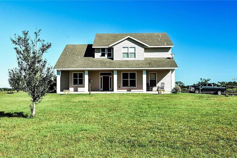 Bring the Horses!! Lovely home on 5 acres with a 36'x 48' 3 stall barn and a small pond. Absolutely stunning family room with 20 foot ceilings and a soaring stone wood burning fireplace. The kitchen has corian counters and solid wood cabinets. There is plenty of room for your RV and/or boat. The porches run the full length of the home in both the front and rear with triple sliding glass door to the rear and add to your living space. While the location is private and peaceful you are still close to Bradenton/Sarasota and the beautiful beach's and state parks.