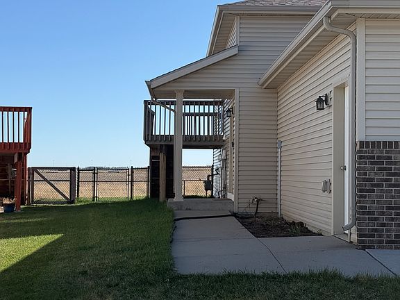 This spacious split-foyer twin home features 4 bedrooms, 2 baths, & double attached garage! Vinyl plank flooring throughout the house!! Vaulted ceilings and open layout from the kitchen/dining to living room! You will be impressed with the kitchen featuring staggered height cabinetry, stainless steel appliances, an undermount sink, pantry with roll-outs and a snack bar--WOW! The main floor boasts 2 bedrooms and a Hollywood bath. The basement is fully finished with a large family room, 2 bedrooms, full bath & large laundry/mechanical room with plenty of storage-The garage features an 8' insulated garage door, service door, lights, opener, and floor drain! The FENCED yard is finished with sprinklers! Located in NE Minot's Stonebridge Farms, a planned community with parks, picnic areas & walking paths! EV hookup ready. NEMA 14-50 outlet in garage. Pet friendly 2 pets max, 60 pound weight limit (contact if your pet is larger). Pet deposit $500, with $50 rent per pet. Renters pay all utilities. No smoking. No HOA. 700 Credit Score Required. Rent is $2050 for military members.