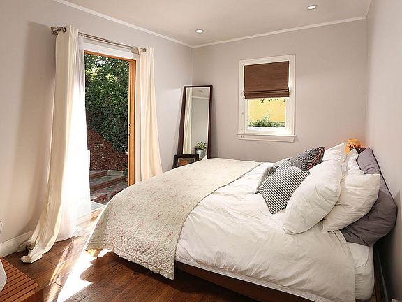 This special 1925 Spanish Bungalow that catches the eye of anyone passing by with it's clean bright white stucco and beautiful blue trim, can now be yours. Perfectly sited back and above the street in prime Silver Lake, facing west and drenched in sunlight and treetop views. Upon entering you will find a light filled living room, gorgeous rich hardwood floors throughout, an ideal floor plan with two bedrooms and two bathrooms. The open chef's kitchen offers plentiful storage and has been thoughtfully redone. Both bathrooms have also been updated beautifully and include spa-like waterfall showers. Both bedrooms open to the magical backyard which has a built in fire-pit to gather around, a terraced hillside with architectural corten steel walls, multiple citrus trees (Meyer lemon, orange, and a loquat) and various spaces to entertain and bask in this oasis. Ideally located just off Silver Lake Blvd, close to boutique shops and dining, the reservoir, dog park, and so much more!