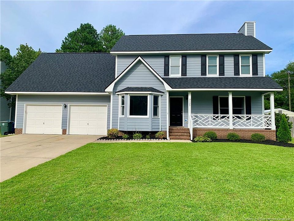 -This is it! Beautiful 2-story corner lot house in Landsdowne and Jack Britt district. Newer roof, fresh interior paint, laminate floors and tile in wet areas. Formal dining, eat-in kitchen w/granite counters, custom cabinets & breakfast bar. Upgraded light fixtures and fans. LARGE Great room with wood burning fireplace! All bedrooms are HUGE and large bonus/4th bedroom upstairs. Master suite has 2 closets, double vanity plus walk-in shower. Front porch and large fenced rear yard for entertaining. Outside storage shed! Oversized garage with proxy flooring and air unit! 1 year Home warranty. being offered by Seller! Place this home on your MUST see List!