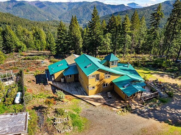 Accepted contingent offer with seller right to cancel with 17 days notice. Your ±20 acre mountain sanctuary awaits! Enjoy the rural lifestyle from the comfort of the gorgeous 3 bedroom, 2.5 bathroom custom home featuring soaring ceilings, an updated kitchen, wood floors, and the convenience of PG&E power! Take in the stunning, unobstructed views of the Trinity River Valley and surrounding mountains from the large wrap-around deck and covered patio. Roll up your sleeves and plant your dream garden in the beautiful gardening area with raised beds, drip irrigation system, pollinator beds, and grape vines. Reap the benefits of the many varieties of established 40+ fruit trees including peach, olive, pomegranate, and more! Water is provided by a well with 2,500 gallons of storage as well as secondary unit for guests, caretaker, or rental income as well as shop and several outbuildings, add value to this already spectacular property. Fire safety measures in place including defensible space and water storage. Conveniently located just 15 minutes, on a mostly paved road, from Downtown Willow Creek.