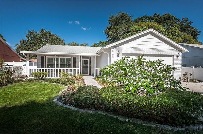 Beautiful home in Seven Springs has been completely remodeled and shows like a model. X500 flood zone so no flood insurance required. The spacious floor plan gives you lots of room and options with formal living/dining room with cathedral ceilings, family room plus 12'x16' bonus/Florida room under central heat and air, formal dining plus eat-in kitchen and snack bar, master bedroom with walk-in closet and adjacent bath, inside laundry and covered porch. Nothing needed here as everything has been done. Custom remodeled kitchen with pull-outs and Corian countertops, remodeled bathrooms, new panel doors, new flooring (ceramic throughout other than bedrooms which are wood laminate), custom shelving in bedroom closets, plantation shutters, ceiling fans, hurricane shutters and more. New water heater 2012, new roof and a/c 2008, new hurricane rated garage door 2008. Great curb appeal and nice fenced yard. This home is truly in move-in condition. Seven Springs is a non-deed restricted community with no HOA fees. Seven Springs/Mitchell school district and it's South Pasco/Trinity area location makes it convenient to shopping and services and with easy access to Tampa, Clearwater or St. Pete.