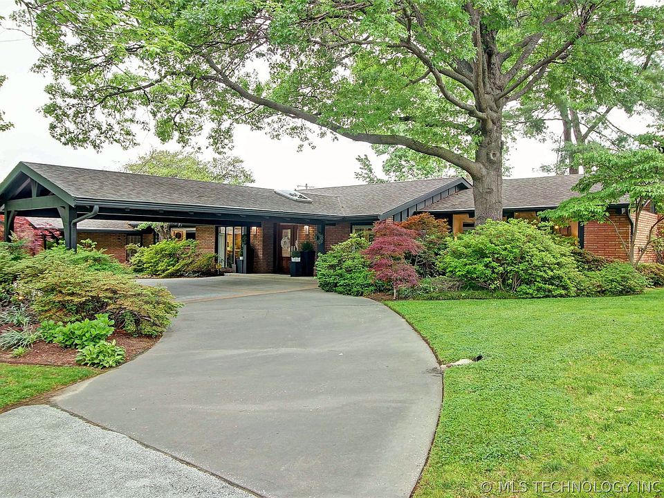 Extraordinary Remodel, Sprawling Southern Hills Mid Century! Open plan ideal for hosting w/oversized kitchen island, Bosch appliances, induction cook top, vaulted den w/large hearth fireplace, Terrazzo floors, new lighting, backyard oasis with saltwater pool, hot tub, lunar lighting, and outdoor grill. Master suite overlooks backyard w/spa-like bath & his/her closets. Beautiful setting with wonderful natural light.