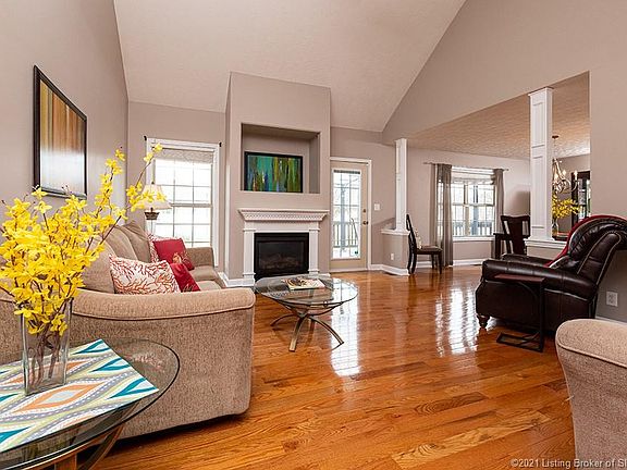 Easy does it in this carefree, Crystal Springs brick ranch. The generous floor plan is 1,800 square feet on the main level, including a nice en suite master, formal dining room and vaulted living room with a sweet fireplace. Notice the oversized windows throughout for bright and cheery rooms. The vaulted 2nd bedroom is light and airy and the third is extra-large. The kitchen layout is easy too with new lighting, a big pantry and laundry room with cabinetry. Gigantic! The only way to describe the unfinished basement just waiting your design ideas; and yes, its plumbed for a third bathroom. It is all about a simple life, easy one level living, a well-maintained home in a fantastic location. This River Ridge area is growing quickly, there are more and more services moving in every month. Of course, you get easy access to the east end bridge and everything Jeffersonville. And bonus! Chapel Lake Park is a brand-new park with 140 acres, stocked lake, and walking paths. No need for a car, theres walking paths from Crystal Springs right to the lake!