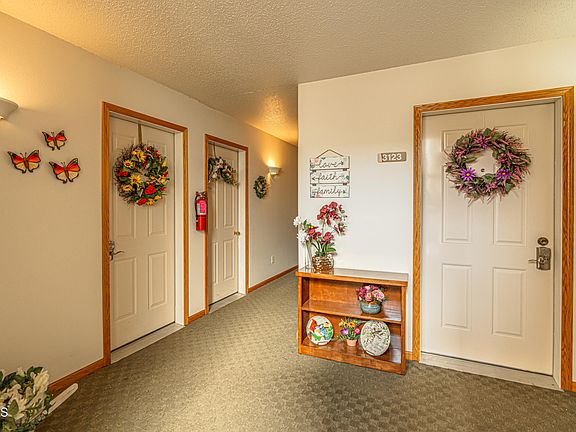 Welcome to this inviting main floor condo in a secure building, offering 2 bedrooms, 2 bathrooms, plus a versatile office area with an oversized closet, spanning 1667 sq ft and featuring an attached 2-stall garage. Built in 2000, this one owner home is conveniently located near shopping, leisure trails, the Family Wellness Center, and more, with easy access to anywhere you want to go in Bismarck and Mandan.
