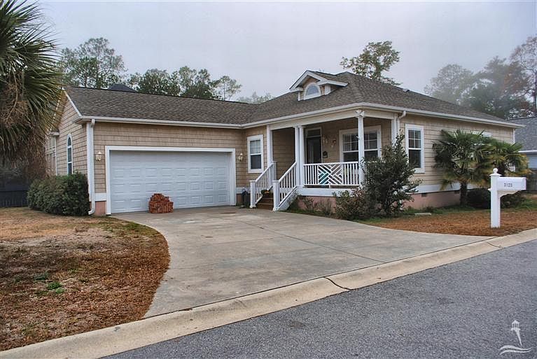 A delightful cottage style home minutes from the beach and in like new condition. This charming home has a quaint Grandma front porch and a lovely screened porch with wood ceilings. A large open footprint with large great room and adjoining dining area with plenty of room for entertaining guests. Don't forget the charming corner gas log fireplace for holiday gatherings with the family. Oversized kitchen with bright white cabinetry and lots of counter space, hardwood flooring follows its way through the impeccable kitchen. A large and cheery Master Suite with spectacular walk-in shower and garden tub. Vaulted ceilings add plenty of drama in this convenient home. Home is designed for very low maintenance on a nice corner lot in a community with no HOA fees. A terrific home in a fantastic budget! A great place to call home!