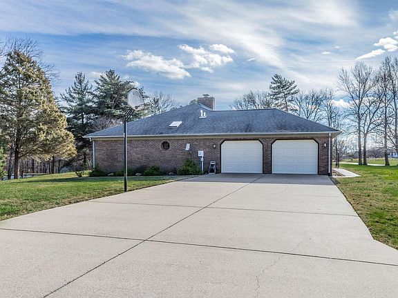 Situated on a 1.49-acre corner lot w/ shared lake! This property offers tranquil views from every room. This custom-built all brick home features a perfect layout w/ 3 beds, 2.5 baths, & split bedroom design. Amentitites include: solid wood doors, hardwood floors, , spacious covered front porch, a large deck, & a cute covered porch off the guest suite. Guest suite has its own walk-in closet. Natural light floods the home, enhanced by skylights in the breakfast nook, owner's bath, & 2nd bathroom. Entering through the front is the foyer which opens into a large great room showcasing a bay window & gas fireplace. The kitchen features an abundance of custom hickory cabinets that are in great condition w/ pull-out drawers. The breakfast bar accommodates 3 stools. All kitchen appliances are included: refrigerator, wall oven, microwave, gas stovetop, & trash compactor. The lazy susan & appliance garage provide extra storage. The breakfast nook opens to the kitchen & great room, w/ replacement french doors leading outside. The laundry room is large w/ addtional storage closet , cabinets, built-in ironing board, plus washer /dryer are included. Additional storage is available in the 24 x 23 garage, attic, & in the separate 10 x 12 storage shed. The owner's suite easily accommodates your furniture & features a full bathroom w/ stand up shower. While located in a subdivision, the home feels private & w/ added convenience of driving a golf cart around the neighborhood. This home is exceptionally well-built, featuring a high-efficiency furnace & a/c. Water heater replaced is 2007 & offers 200 AMP electric service. AT&T for internet, German township water (low water bills), & septic. Excellent utility bills @ $237 per month. Seller kindly request 48 hours response time to all offers.