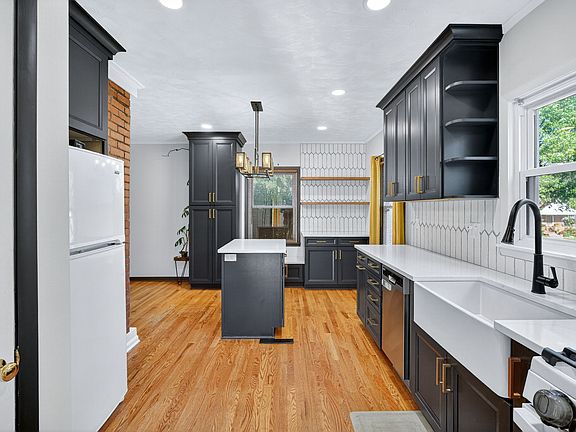 You will love the curb appeal of this adorable home as soon as you pull into the driveway!  Don't miss the two car detached garage to protect your cars from snow and ice!  As you enter the house, you will see a lovely dining area to the left with sliding doors to the backyard that is fully fenced and includes a great patio for relaxing after a long day or entertaining your family and friends!  You also have a storage shed for your toys or yard equipment.  As you go to the right, you will enter the BEAUTIFULLY remodeled kitchen complete with tons of cabinets, gorgeous backsplash and countertops, and an exposed brick wall! A cozy living room and primary suite with it's own bath round out the main floor.  Upstairs you have two more bedrooms and a fully remodeled bathroom.  The basement is great space as well with space for another family room, playroom, or man cave.  Move right in and call this one home!