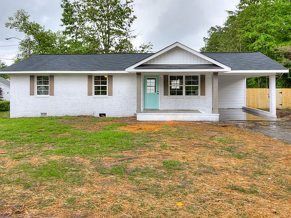 Want a BRAND new CUSTOM home without brand new custom home prices? This white washed brick ranch with gray washed shutters and columns draw the eye to the Sea Foam colored front entry door under this beautiful 7x14 rocking chair front porch! Single car open attached carport with separate entry invite you in to a VERY high end shabby chic/farmhouse style home. Freshly painted gray walls with striking white trim and two panel doors with oil rubbed bronze knobs and hardware create amazing contrasts. The Granite covered island with natural wood and stainless steel pot rack light immediately draw your eye to the open concept living/Kitchen/Dining area where you"ll fall in love with the BRAND new Stainless Steel appliances and walk-in pantry/desk/office area leading into the laundry. Take a stroll down the hallway. Guest bath is to your right with bronzed fixtures, barn door vanity and tiled bath/shower combo. Master suite with custom tile shower and Barnwood floors throughout the home.
