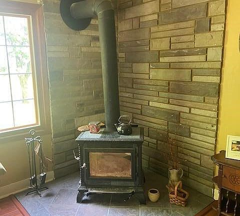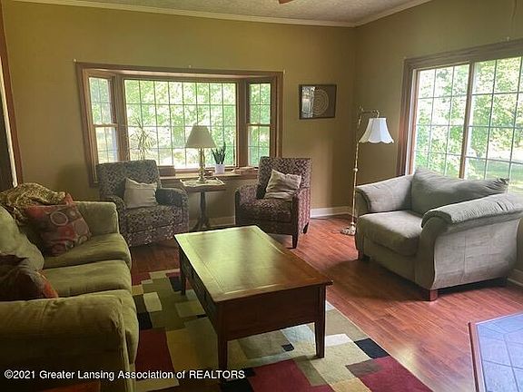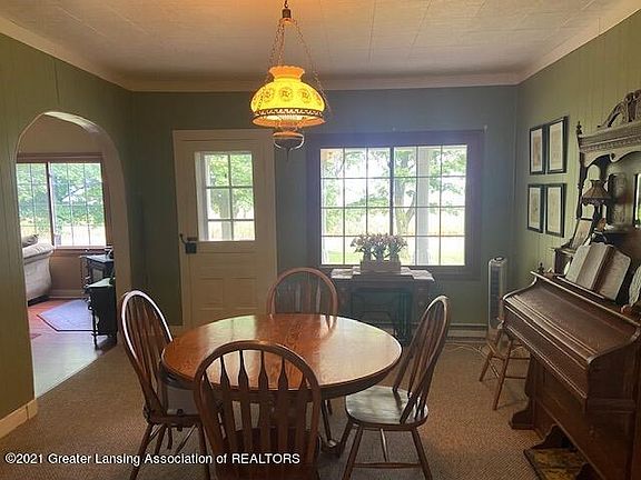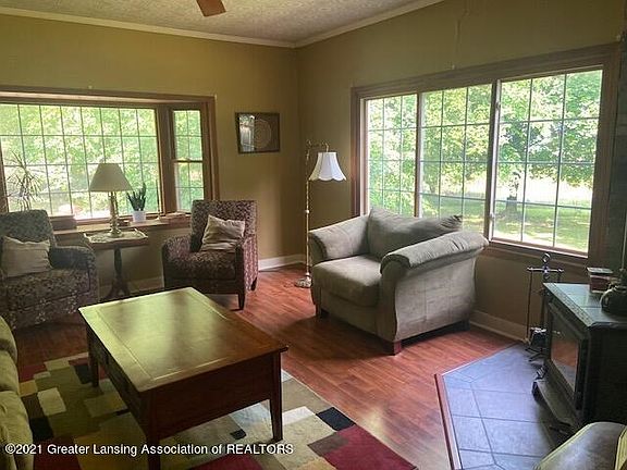 This country home sets on 6 1/2 acres with mature trees, pole barn, and inground pool. Stone wrap around porch with a porch swing. The kitchen is beautifully remodeled and has a view of the pool. Three bedrooms and 2 full baths. Wildlife all around.