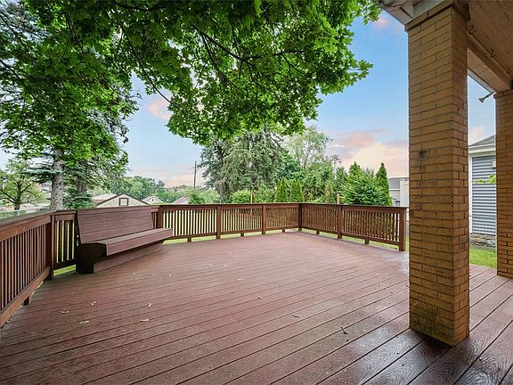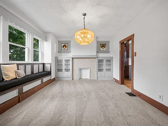 Turn-of-the-century Brentwood beauty boasts preserved historic details, a tabletop quarter-acre lot, and timeless suburban appeal just 5 miles from Downtown Pittsburgh. A shady front porch welcomes you to the entry foyer, where stained glass windows and handsome trim work set a warm tone. Brand-new carpet flows into the living room anchored by an ornate period fireplace mantel. In the dining room, leaded glass built-ins, an extra-long bench seat, and a scalloped window cornice steal the show. The kitchen blends old-world charm with modern functionality, flaunting stone counters and a large undermount sink. Three comfortable bedrooms upstairs feature unique fireplace surrounds and built-in dressers, while the full hall bath hosts a new oversized vanity. Step into the backyard to find a too-good-to-be-true green space dotted with towering trees, a spacious deck, and a meandering path to the detached two-car garage. Don’t miss this Brentwood gem!