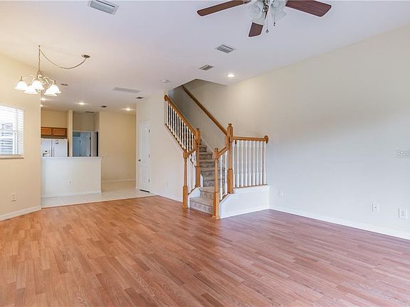 IMMACULATE townhouse nestled within the highly sought after gated community of Claridge Place of Meadow Pointe. This FOUR bedroom and THREE FULL bath townhouse provides an open feel throughout offering high ceilings downstairs, and vaulted ceilings upstairs. Relax on your screened in patio while overlooking the peaceful view as it backs up to tranquil conservation. Open and spacious floor plan complete with neutral colors and several windows, bringing in plenty of natural light. The kitchen opens to the living and dining areas, creating the ability to entertain easily. Unlike other models, this end unit boasts a beautiful curved landing with a wooden railing, a larger kitchen, and showers WITH bathtubs in each bathroom. There is one bedroom located on the first floor which can be used as an office or den. The master suite is upstairs with two closets, and attached bathroom. Pride of ownership is demonstrated in this property as it has been meticulously maintained. Assigned parking ensures you have your vehicle right outside your door. Maintenance free with all appliances included, this makes for a turnkey opportunity. Conveniently located close to A rated schools, an abundance of shopping, the Clubhouse, and more! Water, sewer, community pool, and other amenities included with your low monthly HOA dues. Enjoy the maintenance free living of this beautiful home while taking advantage of everything Wesley Chapel has to offer!!
