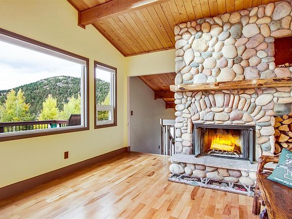Open House Saturday 12-2. The ideal home convenient to Evergreen w/a wonderful mountain feel, tremendous views, culdesac privacy & intelligently remodeled. HUGE private decks, grassy & wooded yard. Awesome master suite. Watch the sunset kicking back in the private hot tub looking across multiple horizons of mountains. Remodeled kitchen w/huge central island even has a wine cooler built in! Vaulting throughout, tongue & groove ceilings, gleaming refinished hardwood floors & a river rock fireplace make it the Colorado dream! ALL NEW SINCE 2014 or newer: septic, windows (5 Pella), GE dual oven, Water softener, Kohler plumbing fixtures, H20 heater, washer & dryer, microwave, Kohler toilet, hot tub, chicken coop and run! whole house surge protector, gas stove, microwave, Digital thermostats, paint inside & out, 400w owned solar system, gutters & downspouts, kitchen hardware! Huge garage, wonderful yard, quiet street. Meticulously maintained & thoughtful improvements throughout.Even More!