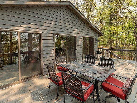 Enjoy the incredible sunsets off the expansive deck, or enjoy the lake views in the 12x30 screened porch. This beautiful , well maintained, 3 bedroom, 2 bath rambler is what you've been looking for. Double detached garage w/ bonus room above that could easily be made into a Bunkhouse. There is landscaped grounds, a huge family room with gas fireplace and the 18x15 main bedroom is all tongue and groove. There is a den that could be a 4th bedroom, with an egress window added. This home is being sold turn key, including a dock and covered boat lift ( not in the lake yet). Come enjoy the summer!