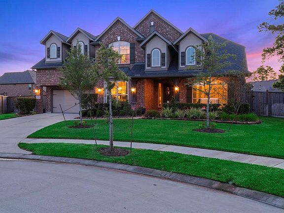 Fantastic value for this stunning 5 BR home on an oversized cul-de-sac lot! 2nd BR down is a true guest suite perfect for a mother in law or nanny. Amazing sunsets in your back yard w/gorgeous pool, spa, pergola & covered patio. Breathtaking 2 story ceilings, Travertine floors + beautiful details throughout: crown molding, arches, niches, tons of windows that flood the home with natural light. Grand 2 story entry with winding staircase & gorgeous iron detail. Study w/French doors. HUGE gourmet kitchen w/oversized breakfast area, extensive built ins, island bar seating, double ovens + large walk in pantry. Master overlooks the pool & has a luxurious ensuite. Upstairs is a private game room & media room (both tucked away so there is no noise competition w/downstairs), 3 BR's, 2 full baths & a study nook. A+ rated schools. 10x12 shed, expoxy floored 3 car garage. Just a short drive to The Woodlands, Exxon, the airport & Grand Parkway, Hardy & I-45. Ask me for a complete list of updates!