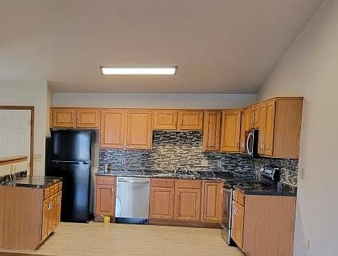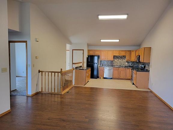This twin home has fresh pain throughout, lighting upgrades, and new carpeting! *fireplace* This ranch floor plan has vaulted ceilings upstairs, with an open floor plan and spacious feel. The upper level has a bedroom with vaulted ceiling, and pocket door to the bath, and a huge double closet. A second spacious bedroom on the upper level too. Living room has a gas fireplace and opens to a deck! We did new flooring in the kitchen and entry area fall 2022. Great drop zone and storage closet at the front door, plus new smooth top stove, lots of counter space, tile backsplash. Lower level has two more bedrooms and a full bath, family room with a walk out to a patio and yard, laundry room with hook ups, and a utility room with extra storage space! Attached two car garage rounds out this large 4 bedroom home. With over 2,200 sq feet, this is one of the larger 4 bedroom options we have! **Fall 2022: We did all new paint, plus new kitchen, hall & laundry room flooring, AND new carpeting in the bedrooms. Enjoy the thick, plush feel of a nice quality new carpet in your new home Side by side twin home, very large 4 bedroom! Renters pay all utilities. Renters do lawn and snow removal. One year lease required. Laundry hook ups. Household income of 4x rent requested, history of paying similar rent on time and no evictions, no unpaid rents. No housing assistance this location.