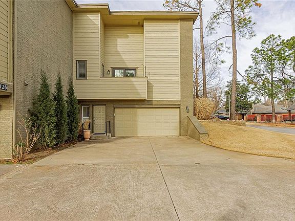 Golf course view. Located in the highly desirable "Trails addition" in Norman. This amazing home features soaring wood ceilings and a unique floor plan with large windows overlooking the golf course. Enjoy relaxing summer nights in your maintenance free yard that is included with your HOA. Primary bedroom has a walk out balcony and a supersized bathroom with a soaker tub. The second bedroom has its own bath. The kitchen is beautifully updated and spacious. HOA does not allow rentals.