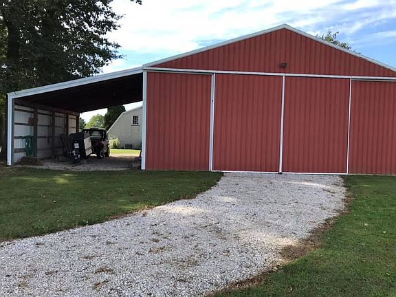 Nice home on a hill with a beautiful setting in quite nieghborhood, mature trees and lots of parking.5 garage spaces plus a 40x46x14 pole barn with concrete floor.Newly paved drive,kitchen remodeled in 2017 with amish cabinets and quartz countertops.Large deck with breezeway between house and garage.All windows are double pane with screens.