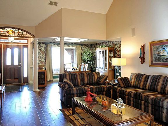 This home features a split bedroom layout, updated kitchen with granite counters and vaulted ceilings throughout. The Foyer leads to the vaulted great room with fireplace and access to patio. Formal dining room as well as eat in kitchen. Updated kitchen with granite counters and new GE cook top in island. Hearth/sun room off kitchen with views of landscaped backyard which backs up to park giving it a feeling of extra privacy. Spiral staircase leads to 4th bedroom. Lots of architectural features!