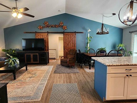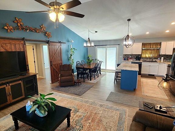 Welcome to your dream home! This spacious 3-bedroom, 2-bathroom house boasts over 1600 square feet of luxurious living space situated in a peaceful neighborhood in the Boyds Creek area providing easy access to all of the conveniences and attractions Sevier County has to offer! The split floor plan offers privacy, while the open concept kitchen/dining/living room area is perfect for entertaining guests. Enjoy the grandeur of vaulted ceilings and the durability of luxury vinyl plank flooring throughout the home. Step into the gourmet kitchen featuring stunning granite counter tops, a huge island and beautiful matching stainless steel appliances. The elegant design flows seamlessly into the rest of the home with matching counter tops in both bathrooms. Retreat to the expansive master bedroom with its huge walk-in closet and private bathroom, providing the ultimate in comfort and convenience. At the opposite end of the home two additional, spacious bedrooms await, both featuring large closets. These bedrooms share the second, well-appointed bathroom and a large foyer area which can be closed off from the remainder of the house using a gorgeous set of sliding barn doors. Step outside to relax with your morning coffee on the covered front porch or entertain on the deck in the spacious backyard, which is almost one acre and fully fenced for privacy and security. A brand new storage building has been installed in the backyard to store your lawnmower, tools, grill, etc. Parking is a breeze with a huge concrete driveway leading to the large 2-car garage, complete with shelving for storage and additional parking next to the garage to store your RV or watercraft. Don't miss the opportunity to make this your forever home! Schedule a showing today and prepare to fall in love with every detail of this stunning property.