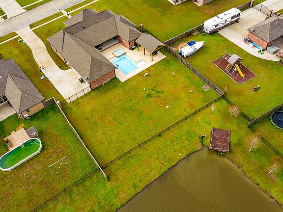 WOW! This must see 4 bedroom/ 2 bath home is situated in Wallace Thibodaux Estates. The back yard overlooks a beautiful hot tub and pool as well as a gorgeous pond. It also features a covered pavilion along with a half bath. This home is perfect for hosting get togethers. There is even a nice office space in a quiet part of the home. Come take a look, your dream home awaits! Buyer to verify measurements.