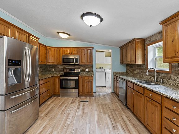 Picture this....You wake up before sunrise, get the kids out of bed, go out the front door and hit the trails for a morning of hunting. As you get settled in your deer stand the sun begins to rise and the deer and turkey start to graze the 20 acres of land. All this right in your own backyard! As you head in for the day you walk into a 4bedroom 2full bath home with an upgraded kitchen that includes granite countertops, a backsplash, upgraded cabinetry & stainless steel appliances. You spend the late afternoon enjoying family in the open living room & at sunset you gather around on your porch swing & watch the sun go down over the trees in your front yard. The 3car detached garage / workshop is a great space for all your ''toys'' & includes a wood burning fire place & is wired for level 2 electric vehicle fast charging. The property has one tree stand & 2 deer blinds; one that has an over hanging to park your ATV or 4wheeler under. Come escape your fast passed life & live & relax in the peaceful & serene surroundings of 20 acres, lined with trees, a beautiful creek, all the wildlife you can imagine & listen to the birds chirping & the leaves blowing in the wind. Sounds like HOME!