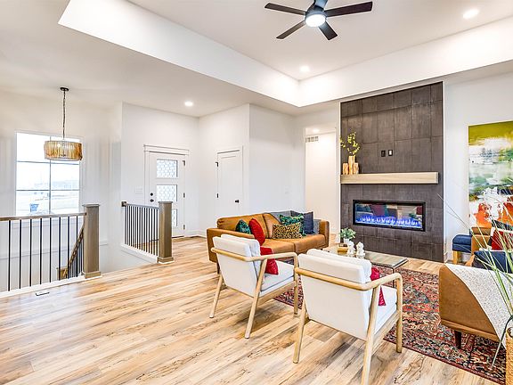 Welcome to Socora's ever so popular "Bailey" plan. The low modern roof lines will draw your attention to step inside this open floor plan leading to a warm contemporary interior of open spaces and spacious rooms. The main floor features large windows, 10' ceilings in the living room with tray ceiling along with 10' ceilings in the dining and kitchen areas. The living room, with an electric fireplace, is open to the kitchen and dining areas generating lots of family space. The kitchen highlights double ovens, a large quartz island with eating bar, plenty of cabinet space, pantry, decorative backsplash and quartz countertops. The dining area includes a 3 panel sliding glass door leading to the 20x15 covered deck. The primary bedroom is roomy and relaxing while the primary bath offers 2 separate quartz vanities, tiled shower, private water closet and large walk-in closet. The main floor also includes 2 more bedrooms, full bath and laundry room. The basement is complete with a large family, office space, walk up wet bar, 2 more bedrooms and full bath. The "Bayley" is perfect for entertaining both inside and out with family and friends of all ages. Fontana offers a zero-entry pool with splash pad, playground, walking paths and lakes. It's also minutes away from New Market Square for all your shopping and dining needs. A $175 mailbox key fee is collected at closing. GENERAL AND SPECIAL TAXES HAVE NOT BEEN FULLY ASSESSED. Both are estimated and not guaranteed. Specials are estimated to be about $160.00/month for 20 years. LOWER SPECIALS, LOWER TAXES AND MAIZE SCHOOLS. All information deemed reliable and not guaranteed. OPEN THURS - MON 1:00-5:00 OR ANYTIME BY APPOINTMENT.
