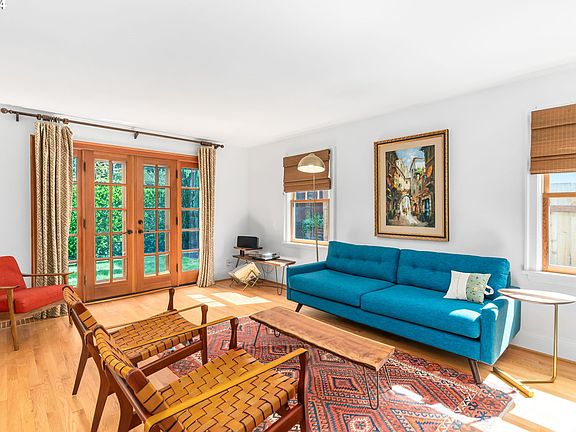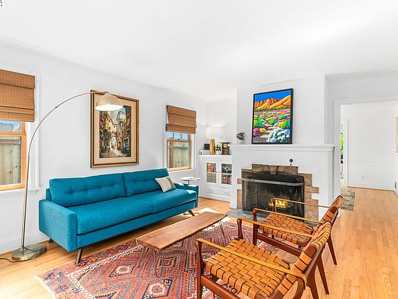 Oh so charming Alameda home sits far back from street surrounded by a tall Laurel hedge creating a quiet and tranquil environment. Exceptional floor plan with all bedrooms on upper level and plenty of windows to capitalize on the southern exposure! Tasteful period updates to the kitchen and bathrooms. Lovely sunroom on main level. Charming original details including built-ins, wood burning fireplace, and hardwood floors are seamlessly married with the updates that make for easy, modern living. The living room French doors open to the front yard, there is dining deck off the kitchen and sunroom, plus the upper level veranda with territorial views all bring the outdoors in, flooding the home with natural light. There is a low maintenance terraced back yard with dining deck off the kitchen and a flat grassy front yard for play and pets! Plenty of storage in the unfinished basement and attached garage. Coveted Alameda Elementary/Grant High school cluster. It's all here and this one just feels good! [Home Energy Score = 4. HES Report at https://rpt.greenbuildingregistry.com/hes/OR10191257]