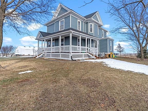 Step into your dream farmhouse retreat! This expansive, fully restored early 1900's home offers 5 possibly 6 bedrooms, 3.5 bathrooms on a picturesque 2.33-acre property, featuring panoramic views in all directions, w/ stunning sunrises and sunsets. Nestled on the land, is a charming orchard w/ apple, cherry, peach, pear & mature pecan trees along with several blackberry and raspberry bushes that give an abundant harvest each year! The exterior showcases newly planted Maple and Poplar trees, several Lavender plants, a convenient chicken coop to match the house, and a spacious 90x54 pole barn complete W/ water and electricity and a 10x20 garden shed, 20x40 Hoop House. Enjoy serene surroundings from the expansive wrap-around front porch, enhanced w/a delightful porch swing. The property has been thoughtfully updated, with granite counter tops, tile backsplash, intricate woodwork throughout, a brand-new roof installed in 2023, an high efficient instant hot water heater, thermal floor heating featuring multiple zones, a whole house vacuum system, and a cozy propane fireplace. You'll also benefit from a whole-house generator (ready for hook up), as well as an owned propane tank for added convenience, all with public water added 2024 and still has the well for outside spigots. For your utmost comfort, Air Conditioning system was installed in 2023, ensuring year-round comfort.