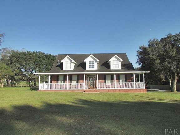 SELLER HAS DROPPED THIS HOME FROM 399 TO 300k, AND NOW SELLER'S LOSS IS YOUR BUYERS GAIN!!!! TRULY DARE TO COMPARE THIS HOME WITH OTHERS AT THIS PRICE!!! Come home from your stressful day and will away the time watching the ducks and turtles in this private lake stocked with fish and is ready for your buyers fishing pole! Almost 2 acres of manicured grounds...seller keeps all the property mowed and it is so very peaceful as you walk the grounds down to the lake. Truly look at what is available under 300k in Cantonment today with at least 1 acre built from 1995 to present...there are 0!!! And only 3 that have acreage yet all built in the late 80's. This is a winner of a home, and simply put is one of a kind! Drive up to a Southern Stunner with a wrap around porch, all brick home and you will be hooked! Seller has dressed this home with so many amenities...like 25 ft ceiling entry way into the dramatic great room and the fabulous front triple glass door that has four has transoms making it light and bright...a super large foyer leads your way into the living space with hardwoods and a fireplace to die for! Gorgeous dining room with french doors and more transoms give this large space plenty of lighting and the beautiful floors continuing! Kitchen has tons of cabinets, high ceilings and a breakfast bar...also an eating space for breakfast meals. Flooring is brick pavers and dark countertops, and you can see the beautiful back yard! Also included are stainless steel appliances!! Do not let the 2 story keep your buyers that are looking for that first floor master as this home has it downstairs and has a bathroom loaded up with good stuff! Including a soaker garden tub...walk in shower. There is a large game room on the 2nd floor ++ a nice sized bedroom for the kids, and barn doors leading to the service bath room ...could be even used for a 4th bedroom. This home has so many extras + 2 ac's, 2 car detached garage with 500 extra sq ft !!