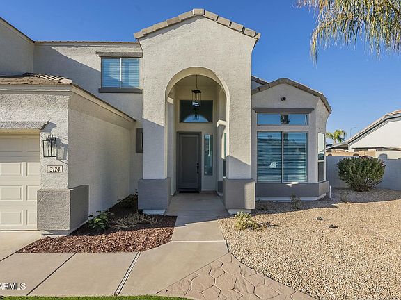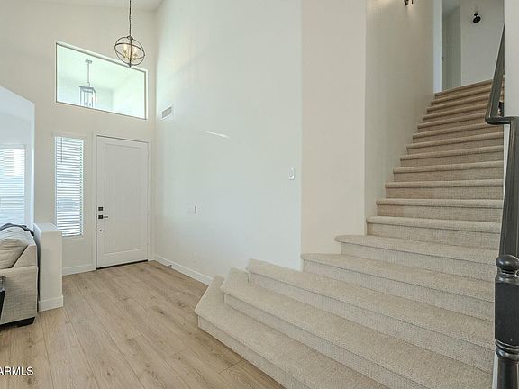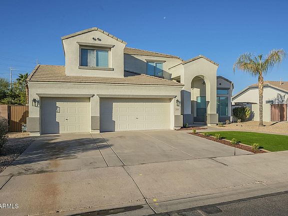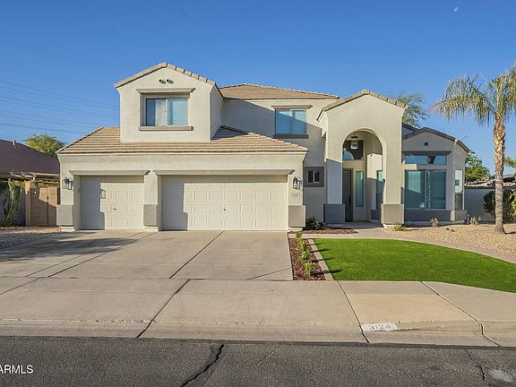 Come and see this freshly remodeled 5 bed / 3 bath / 3 car garage with a pool home in east Mesa. Located in the sought after Mesquite Canyon community you are located just minutes away from the 202 and US 60 freeways giving you quick access to all that the southeast valley has to offer. This stunning 2 story home is move in ready. Freshly updated landscape and exterior paint give the home great curb appeal. Through the front door you are welcomed by soaring ceilings, brand new luxury vinyl plank flooring in the main living areas and plush patterned carpeting on the stairs and in the bedrooms. Through the large front living/dining room is your brand new kitchen. The fully redesigned kitchen features brand new black shaker cabinets with brushed gold hardware, massive side by side stainless fridge/freezer combo, beautiful honed white quartz countertops with eat up bar, a custom tiled backsplash and under cabinet lighting. Just off the kitchen is the oversized family room with custom tiled fireplace. Off of the family room is one of the five bedrooms that is currently staged as an office, but with the full bath downstairs it is perfect for out of town guests. Up the stairs and to the right is the beautiful master suite that features a large walk in closet, black shaker cabinets with large marble look tile, gold plumbing hardware and accents throughout, large soaking tub, dual vanity sinks with makeup area, a private toilet room and a new walk in shower. Down the hallway is the 3rd bathroom and remaining 3 bedrooms. New door hardware, ceiling fans, light and plumbing fixtures throughout gives the home a modern feel. New window coverings. 2 BRAND NEW A/C UNITS!!!! Out back there is a large patio, sparkling pool and grass area perfect for entertaining. West side of the backyard has a fenced in pet area that can be removed if the new owner doesn't want it. Don't miss out on this beautiful home. Come and see it today!!