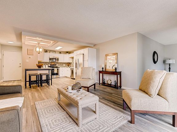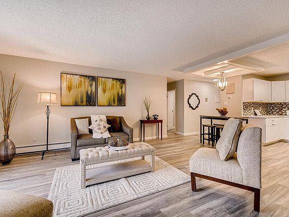 Stunning, completely remodeled condo in desirable Heather Gardens! Updated kitchen, bathrooms, new flooring, quartz countertops, and new paint. Open floorplan with additional space to be used as a dining/ craft/ or den room. Large bedrooms with master walk-in shower. This unit has 2-car parking spaces w/storage units, located right across the street. Don't miss large storage closet #205 directly across the hall from unit in laundry room! Shared laundry with reserved time just for you, do 2 loads at once! HOA includes: 55+ group, a 10M$ clubhouse, community pool (both inside and out), exterior maintenance w/roof, fitness facility, heat, insurance, sewer, snow removal and water. A 9-hole golf course ($9 per game), golf pro shop, tennis and pickle ball courts & restaurant. 200-acre community, walking trails, bike lanes, light rail station, community garden and RV storage lot, on-site maintenance staff and pet friendly area.