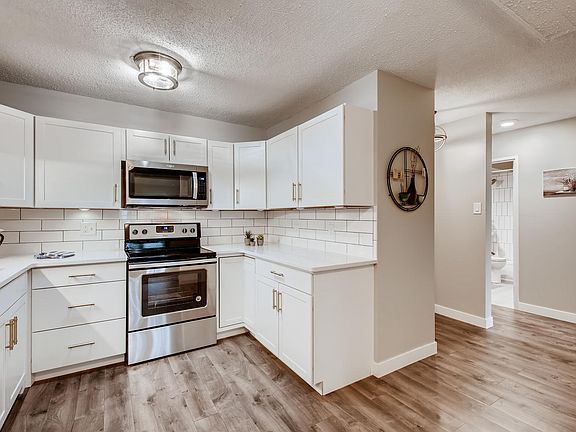Nature lovers dream with an incredible view! Beautifully updated 1bd/1ba Condo in Heather Gardens. All new kitchen cabinets & hardware. Quartz counter tops w/ an undermount sink. Stainless steel appliances. Opened up kitchen for a light bright feeling. All new bathroom. Fresh modern wainscoting. Ceiling fans in the living room and bedroom. Huge walk in closet. French doors to the Lanai which overlooks a water feature and the golf course! The Lanai curtains stay! Everything is done so just move in and enjoy! Perfectly located just one block from the $10M clubhouse & Rendezvous restaurant. Come enjoy the 55+ Heather Gardens lifestyle with a 9-hole golf course, tennis courts. Walking Distance to Cherry Creek Reservoir, Nine mile Light Rail Station, and Shops! Easy access to 225, I-25, Downtown and DIA! Seller is offering one free year of laundry service via Dependable Cleaners