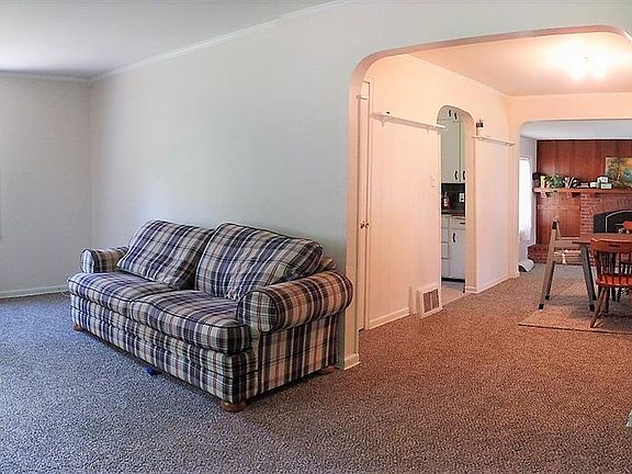 Brand new roof! You'll be delighted with the main floor Family Room with woodburning fireplace and bay window in this vinyl-sided bungalow. Brand new carpeting, spacious Dining Room, Kitchen appliances stay, hardwood flooring in both bedrooms. Basement features Rec Room for Kiddos, Laundry and Workshop area for the hobbyist. Detached Garage and privacy fenced back yard. Seller offering AHS home warranty!