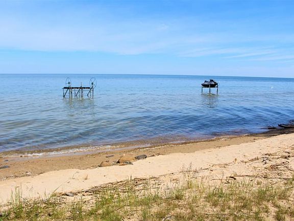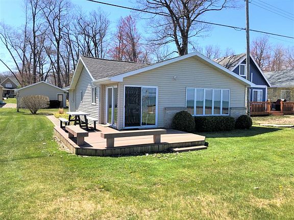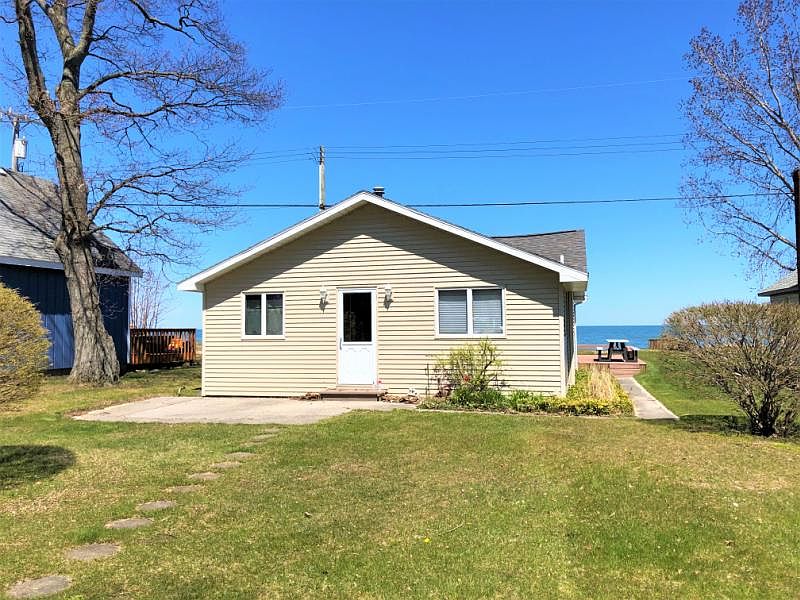 This well-maintained lakefront home is located on a quiet side street off Port Austin Rd. It features 2 bedrooms, 2 baths, spacious living room with fireplace, 2 1/2 car garage and a beautifully wooded deep lot. There is a small, enclosed 3 season room off the main living room, perfect to watch sunsets! All appliances are included, and this home is ready for you and your family to move in! You will enjoy this beautiful lakefront with gorgeous sunsets over Lake Huron from your lakeside deck and you will be able to walk the beach for miles. Plus this home has a cement walkway leading from the patio to the beach for easy access! This home would be a wonderful retirement retreat, or great year-round home.