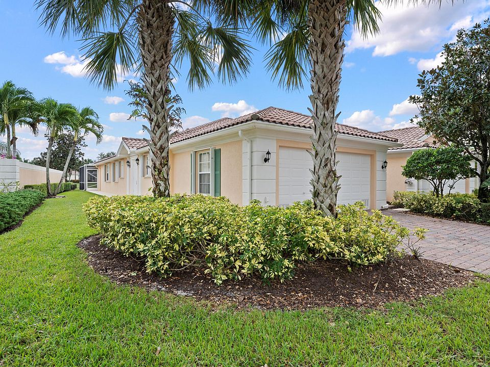 Beautiful, Immaculate Villa. One Owner. This extended Capri gives you an extra 154 square feet of living area under air. Long water views from the large screen Patio and Master Bedroom. Nice Open Floor Plan. Kitchen Cabinets and Laundry Closet has PULL OUT Shelves. So many amenities offered in this special Community. Restaurant, Gym, Resort Pool, Lap Pool, Lighted, Clay Tennis Courts, Pickleball, Playground and more. Sidewalks thru out the Community for walking, Bike riding. Wonderful place to live. Close to all you Equestrian Venues. Great location. Trucks okay if they can fit in the garage.