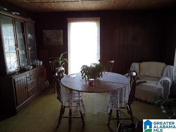 In town location on 1.5 acres with creek on back, level and wooded. 3 bedrooms and 1 updated bath. Living room, dining room, eat in kitchen, back porch for laundry area. Home needs work - sold "as is". Motion lights, attached carport, and great front porch, flooring recent.